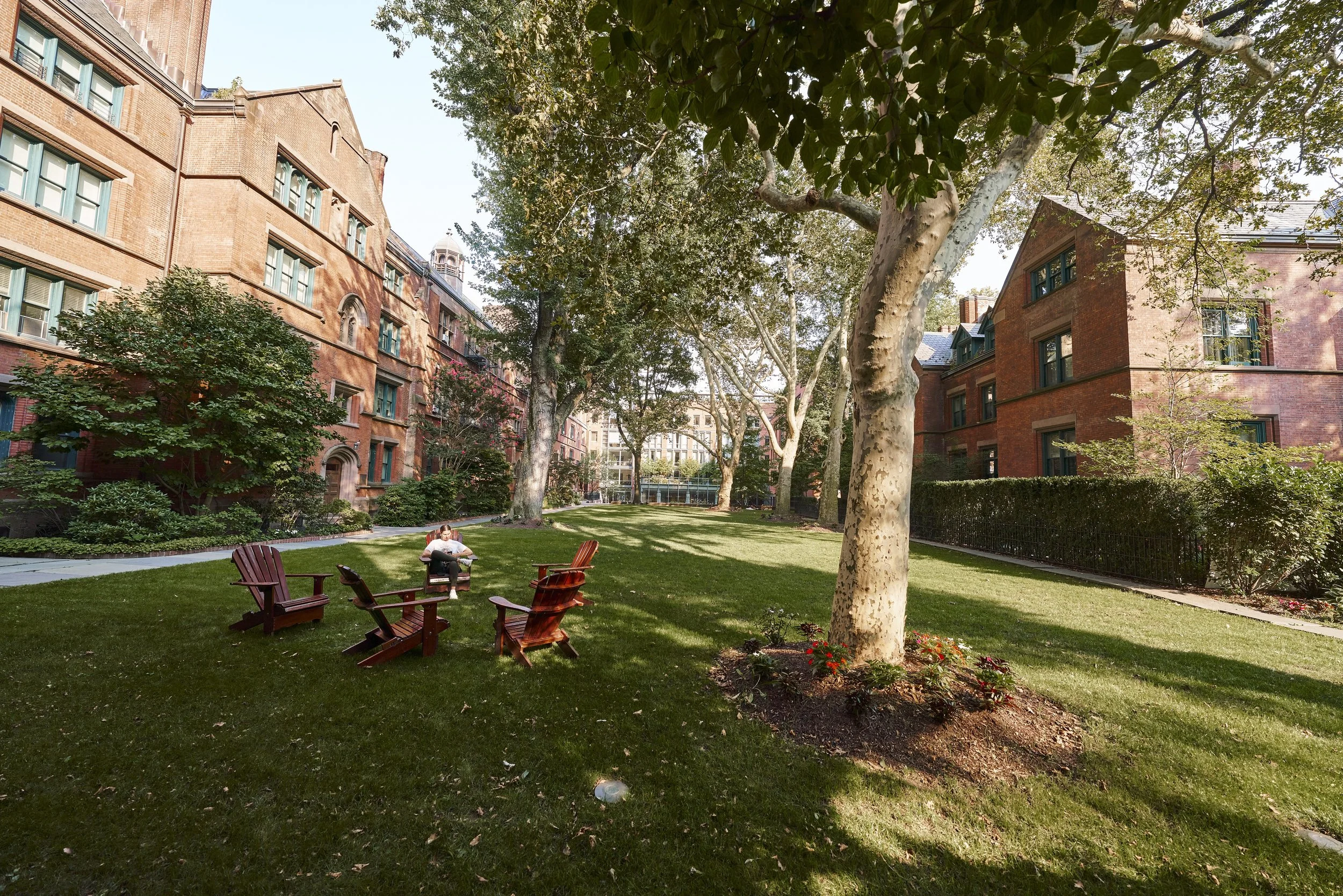 The surrounding gardens and tree-shaded lawns, known as the Close, are bordered by neo-Gothic buildings that were once the residential and teaching halls of the Seminary. Here again, the double quadrangle was modeled on Oxford colleges by the architect Charles Haight, whose work can also be seen at Yale University. The refectory, known as Hoffman Hall, containing two fireplaces, a musicians’ gallery, a coffered barrel-vaulted ceiling, and leaded glass windows, is a breathtakingly grand and impressive space.
